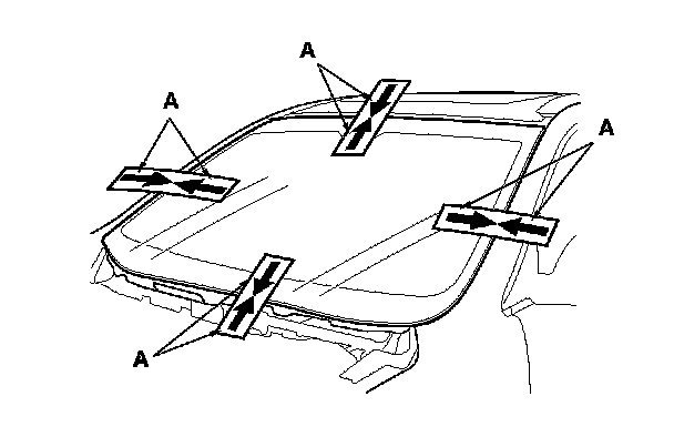 3. If the old windshield is to be reinstalled, make alignment marks (A) across the glass and the body with a grease pencil.