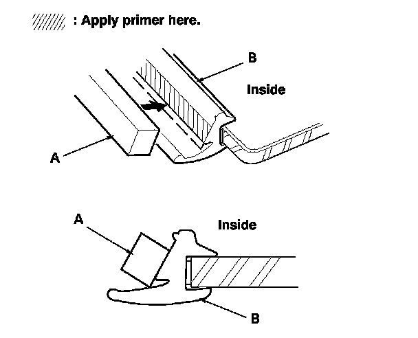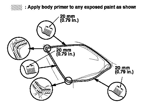 - Never touch the primed surfaces with your hands. If you do, the adhesive may not bond to the windshield properly, causing a leak after the windshield is installed.