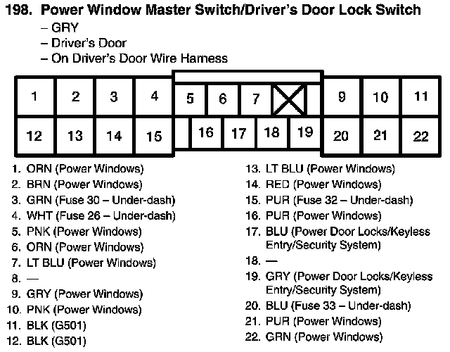 View 198 Power Window Master Switch/Driver's Door Lock Switch Connector View