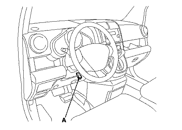 2. With the ignition switch in LOCK (0), connect the HDS to the data link connector (DLC) (A) under the driver's side of the dashboard.