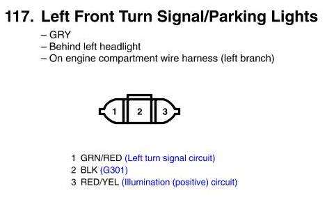 View 117 - Left Front Turn Signal/Parking Lights Connector View