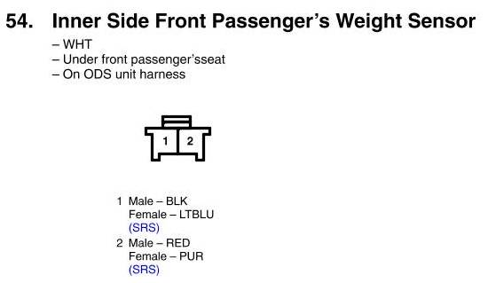 View 54 - Inner Side Front Passenger's Weight Sensor Connector View
