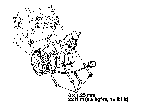 11. Install the A/C compressor in the reverse order of removal, and note these items: