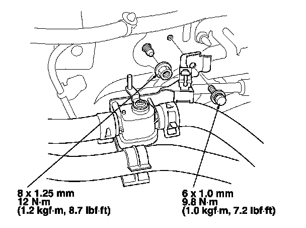 6. Remove the mounting bolt and the heater valve as shown. Remove the mounting nut from the heater unit. Take care not to damage or bend the fuel lines and the brake lines, etc..