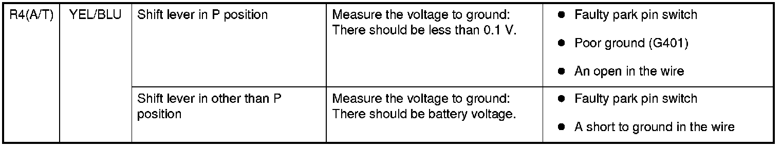 4. Reconnect the connectors to the under-dash fuse/relay box, and do these input tests at the following connectors on the under-dash fuse/relay box.