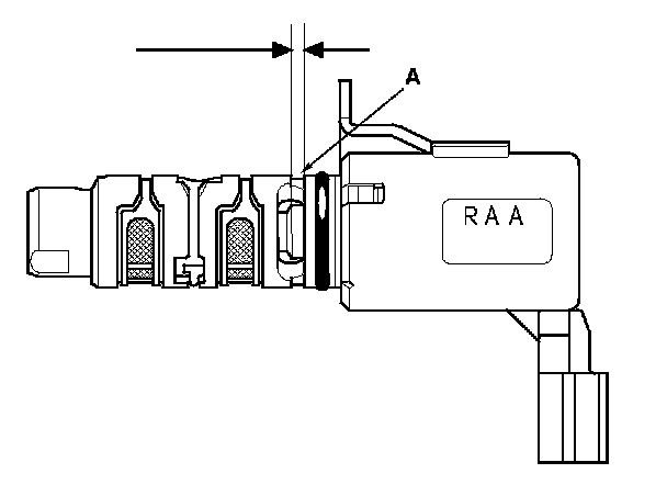 1. Disconnect the VTC oil control solenoid valve connector (A).