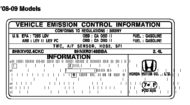 CONFORMS TO REGULATIONS: 2008MY