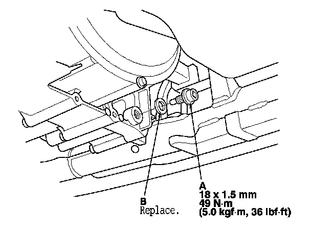 2. Reinstall the drain plug with a new sealing washer (B).