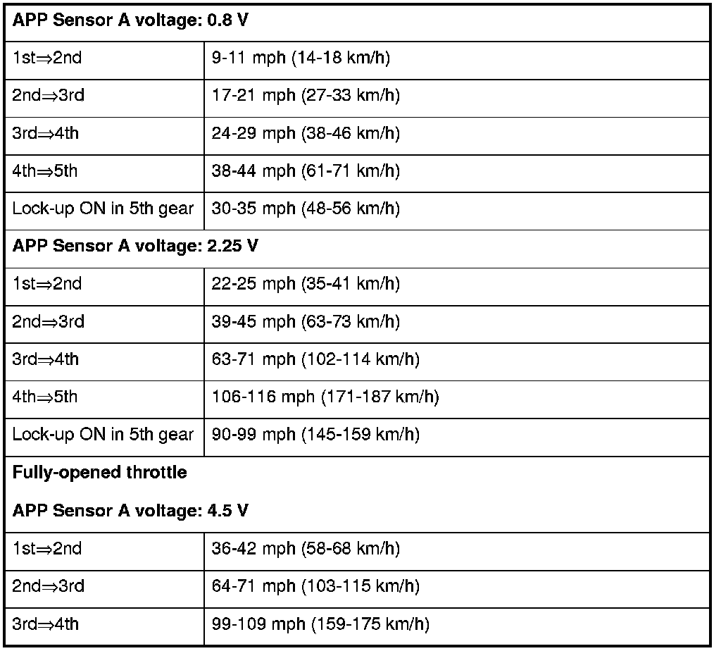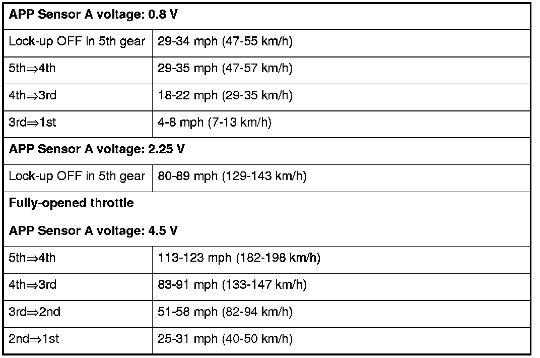 8. Monitor the HDS and accelerate quickly until APP Sensor A reads 0.8 V. Maintain a steady throttle until the transmission shifts to 5th gear, then slow the vehicle and come to a stop.