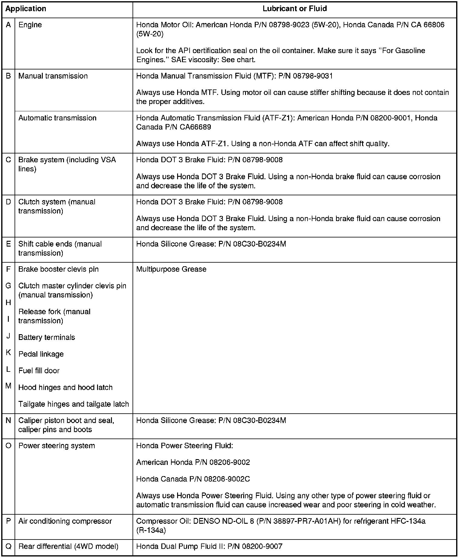 Fluid Type Specifications