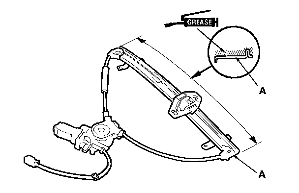 5. Apply multipurpose grease to all the sliding surfaces of the regulator (A) where shown.