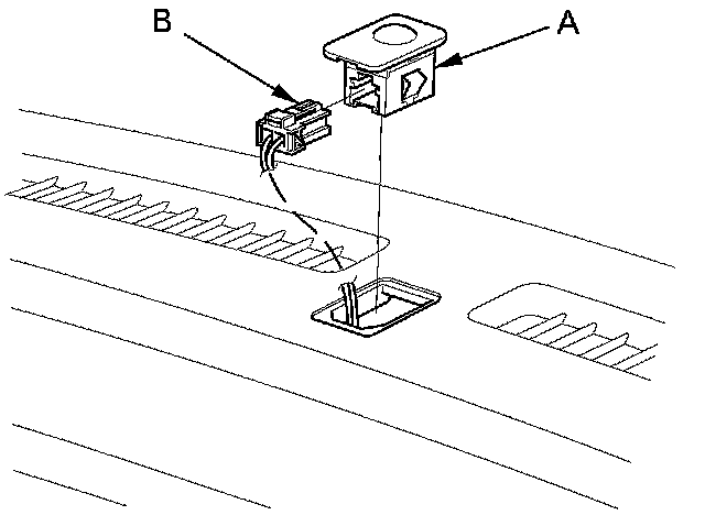 1. Remove the sunlight sensor (A) from the dashboard, then disconnect the connector (B). Be careful not to damage the sensor and the dashboard.
