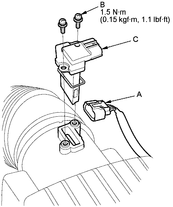 Remove the MAF sensor (C).