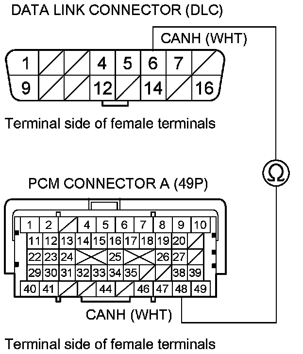 31. Check for continuity between PCM connector terminal A49 and DLC terminal No. 14.