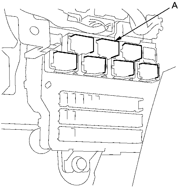 36. Remove PGM-FI main relay 1 (FI MAIN) (A) from the driver's under-dash fuse/relay box.
