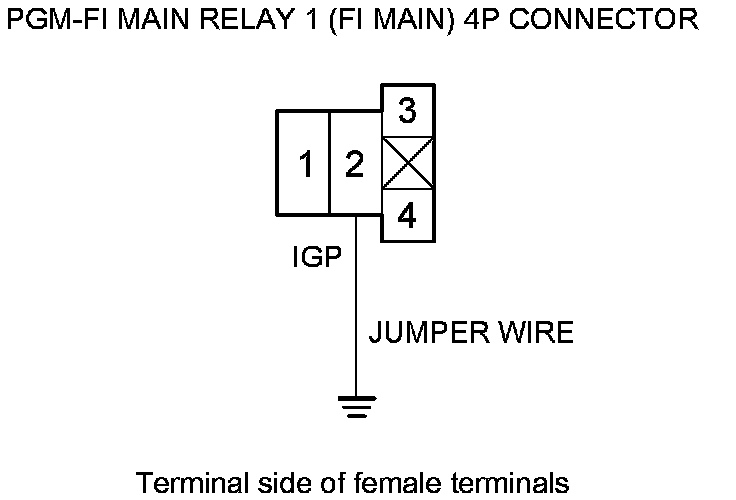 61. Connect PGM-FI main relay 1 (FI MAIN) 4P connector terminal No. 3 to body ground with a jumper wire.
