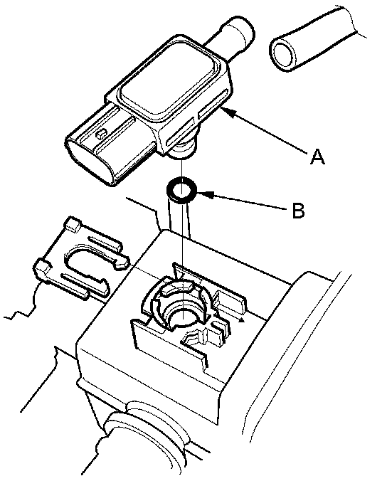 Install the parts in the reverse order of removal with a new O-ring (B).