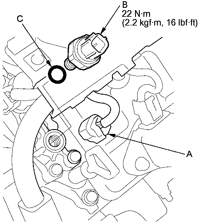4. Install the parts in the reverse order of removal with a new O-ring (C).