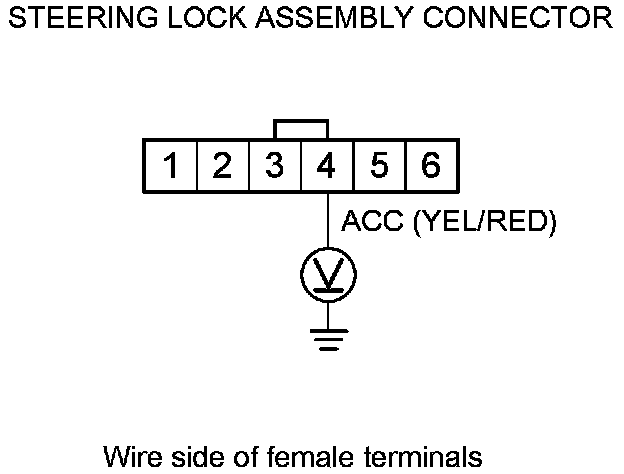 5. Measure the voltage between steering lock assembly connector terminal No. 4 and body ground.