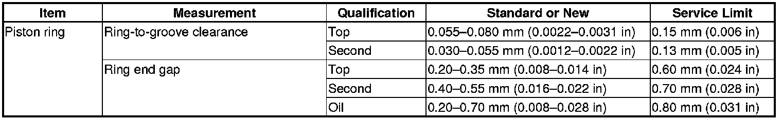 Piston Ring Specifications