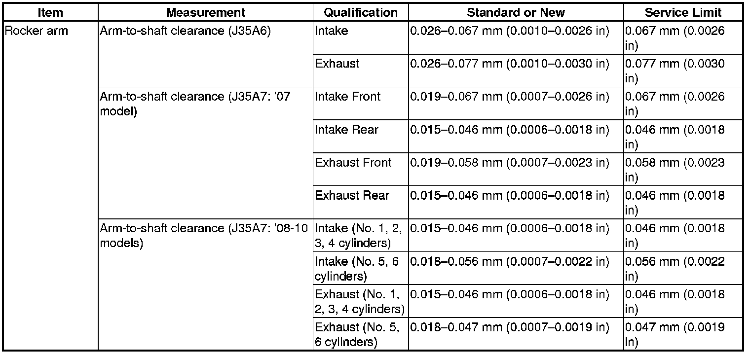 Rocker Arm Specifications