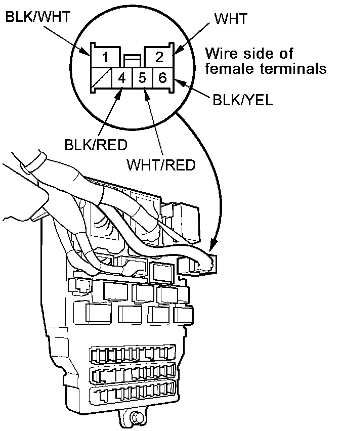 3. Disconnect the 6P connector from the driver's under-dash fuse/relay box.