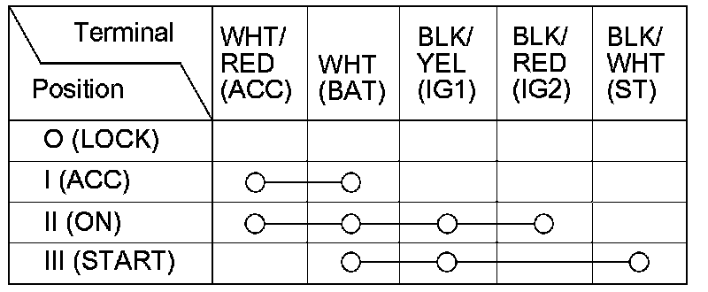 5. If the continuity is not as specified, replace the steering lock/switch Service and Repair.