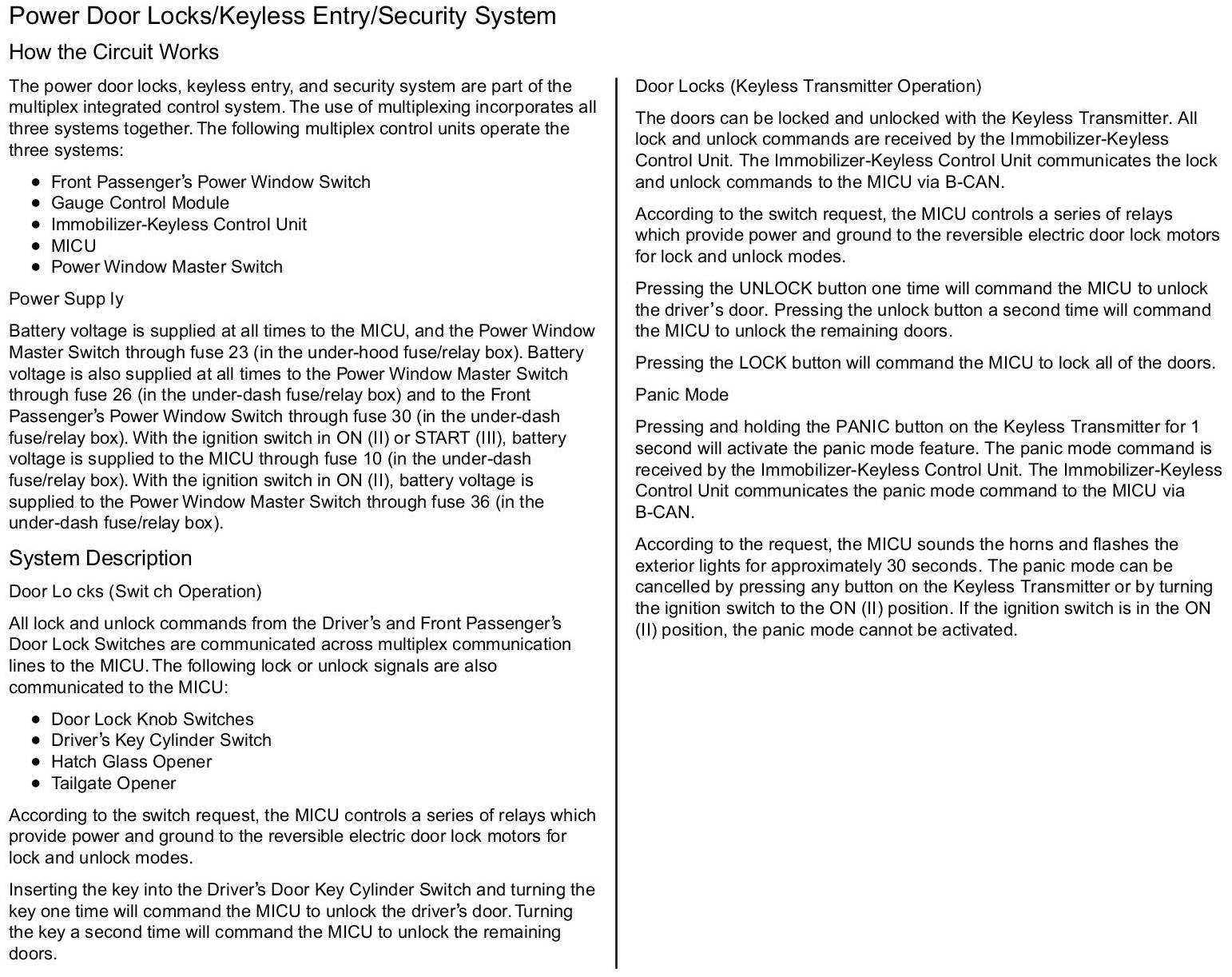 How The Power Door Locks/Keyless Entry/Security System Circuit Works