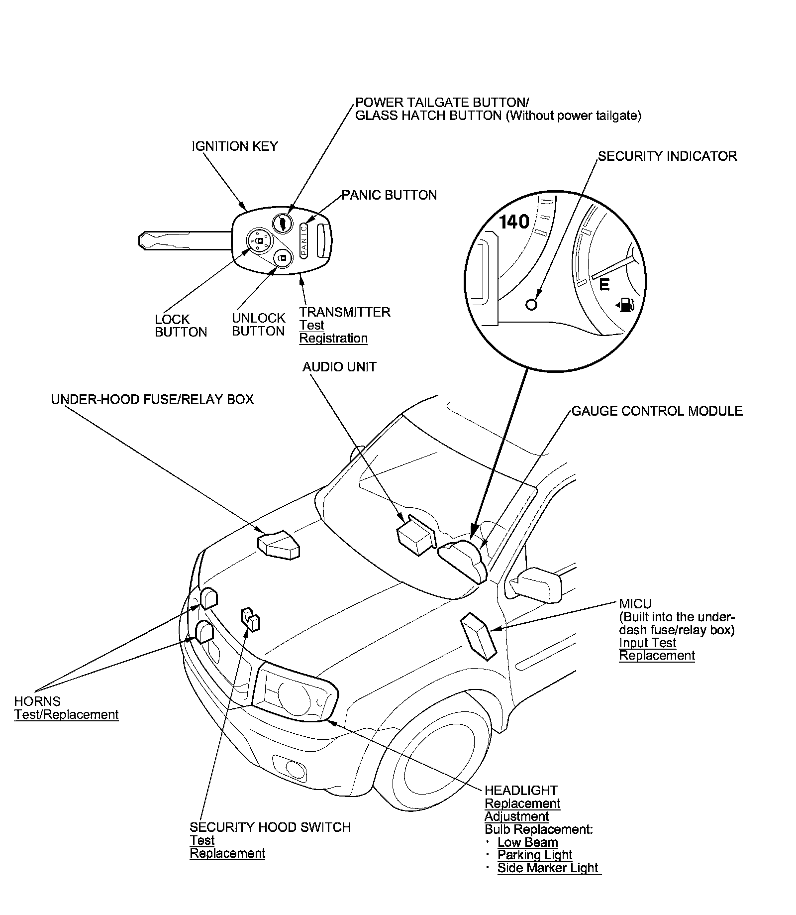 Keyless/Power Door Locks/Security System Component Location Index
