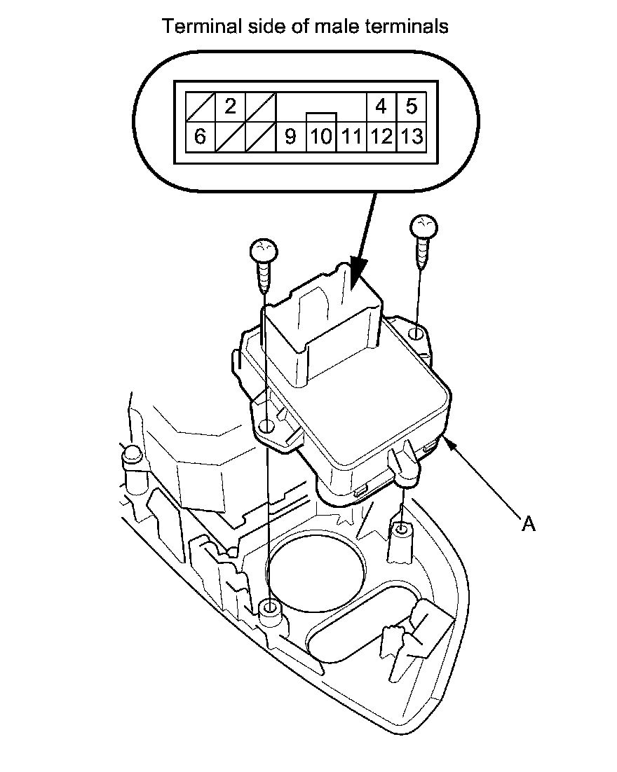 2. Disconnect the 13P connector from the power mirror switch (A).