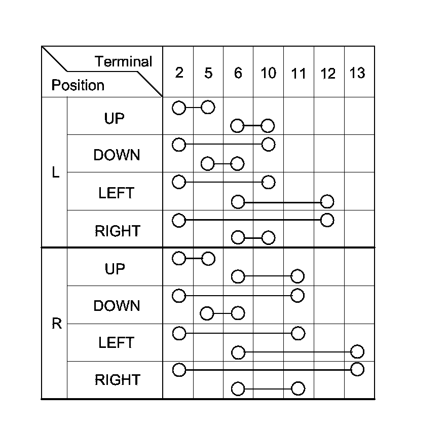 3. Check for continuity between the terminals in each switch position according to the table.