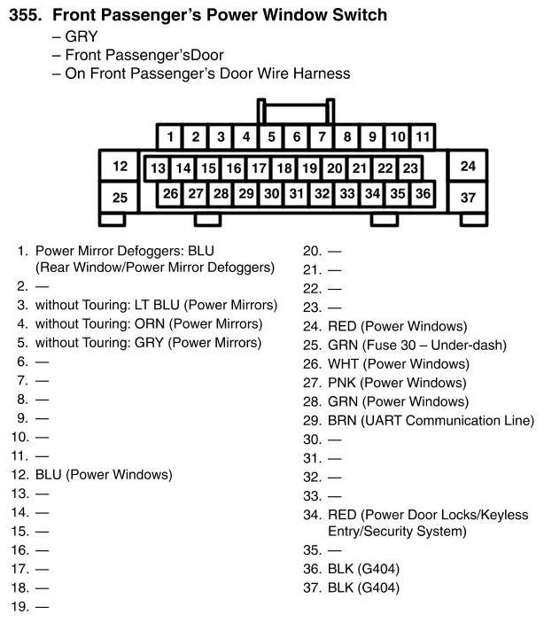 Front Passenger's Power Window Switch Connector View
