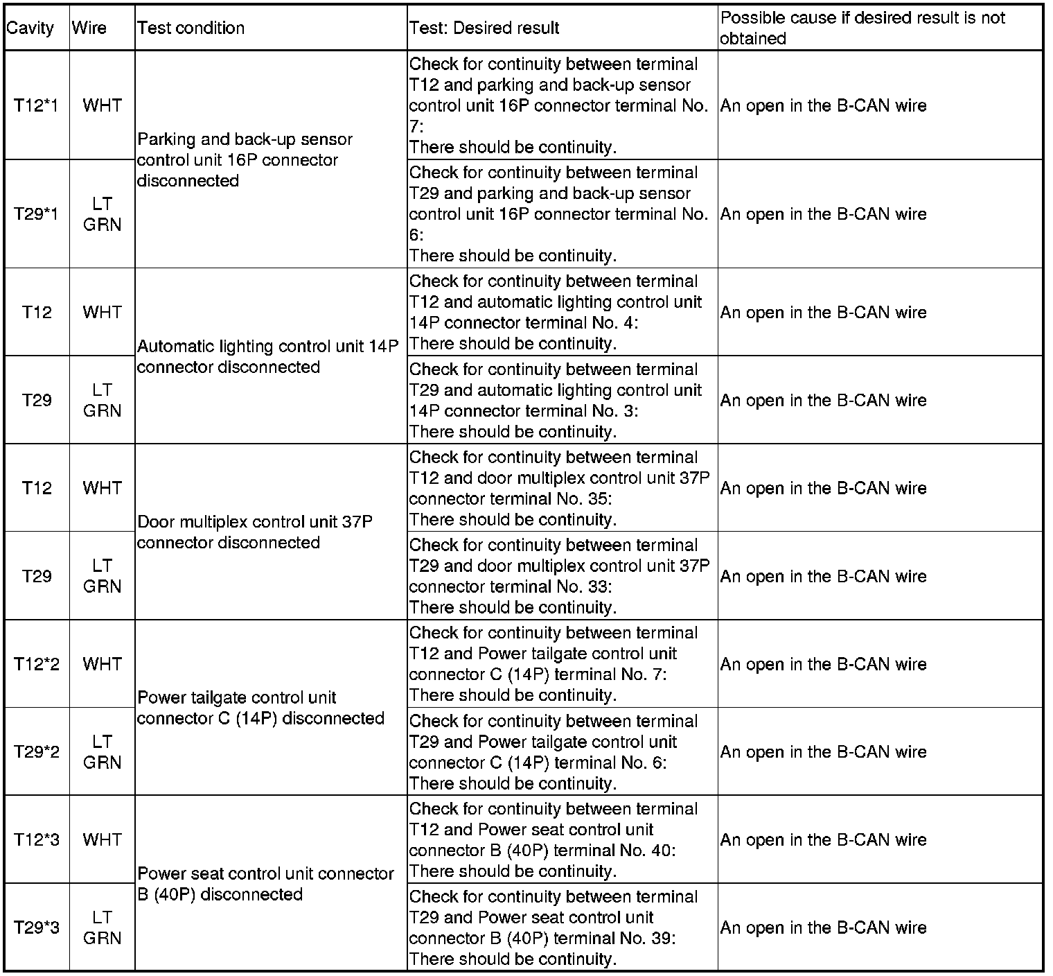 NOTE: Before testing, troubleshoot the multiplex integrated control unit first, using B-CAN System Diagnosis Test Mode A Troubleshooting - B-CAN System Diagnosis Test Mode A, and make sure the lighting system works properly.