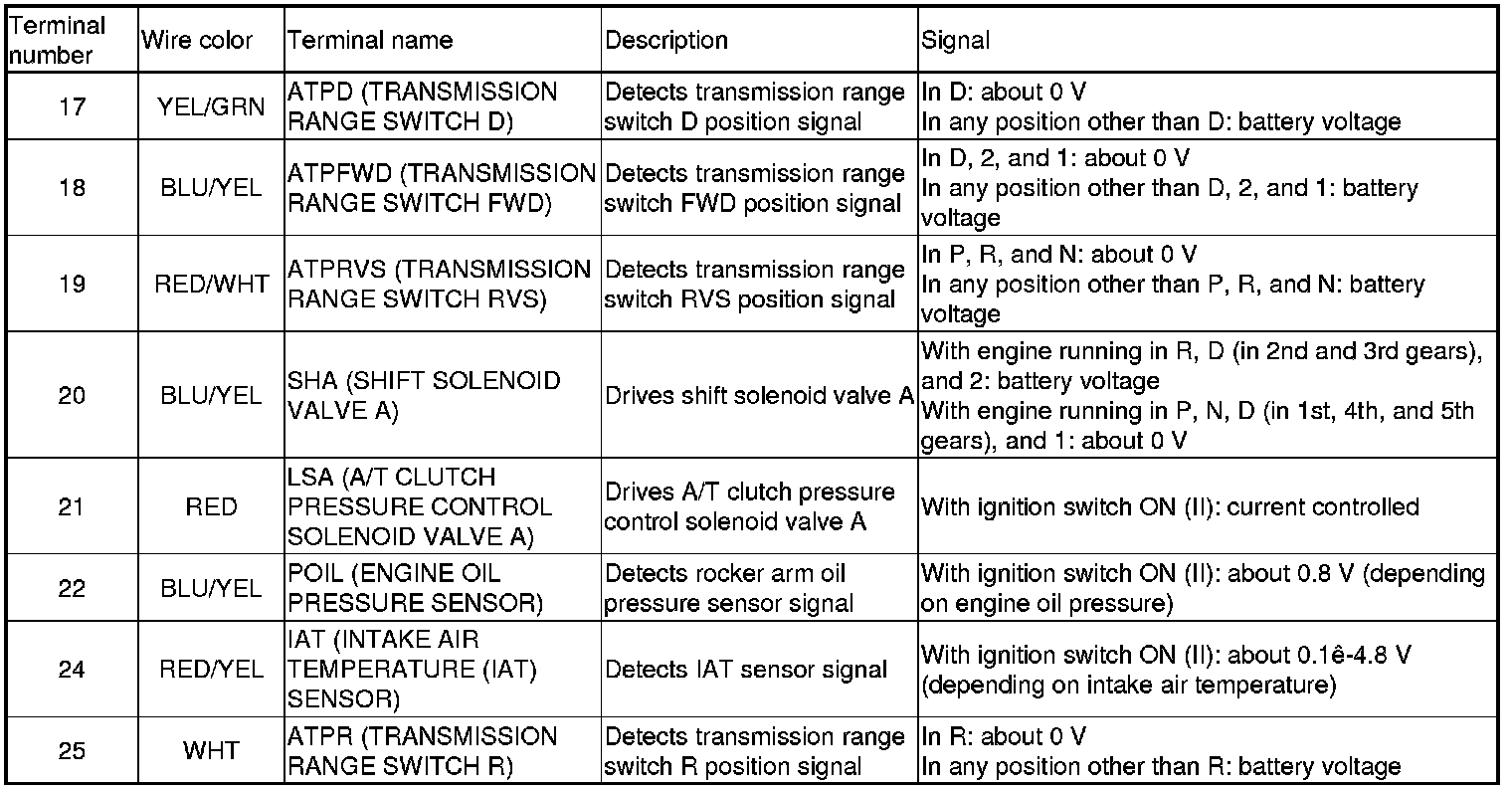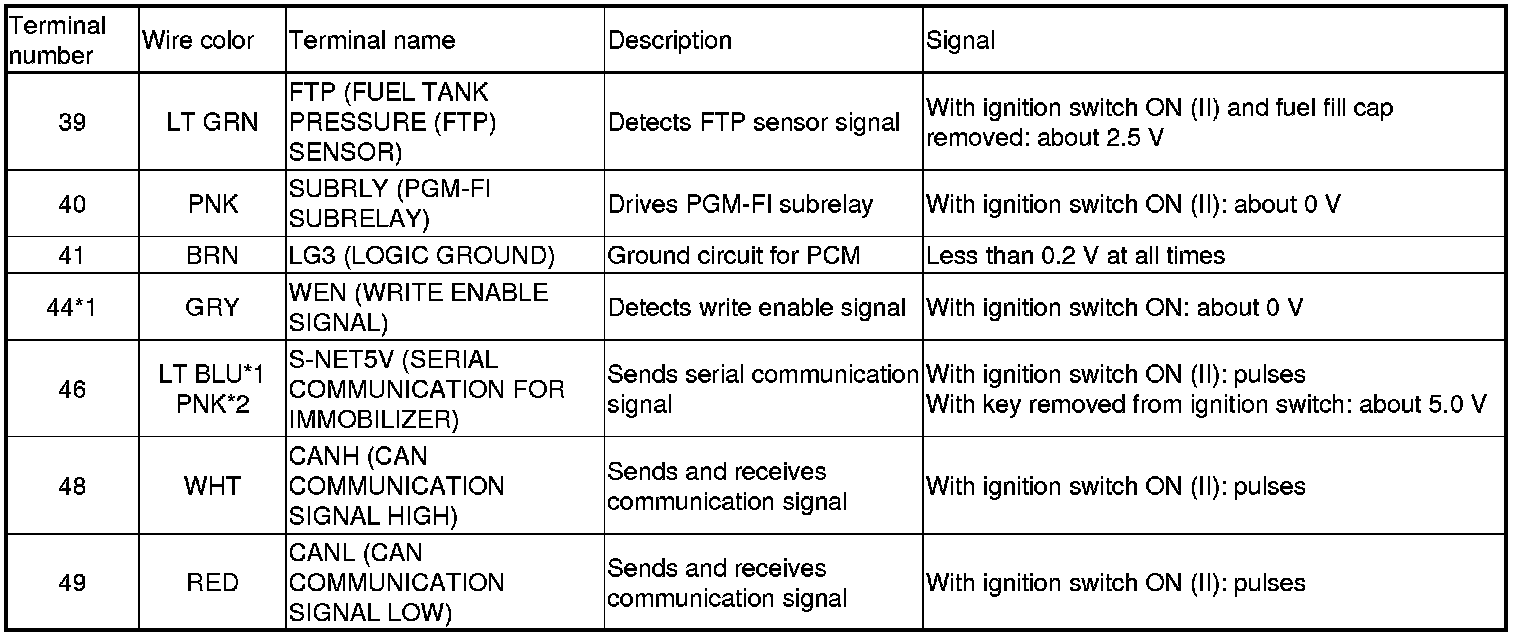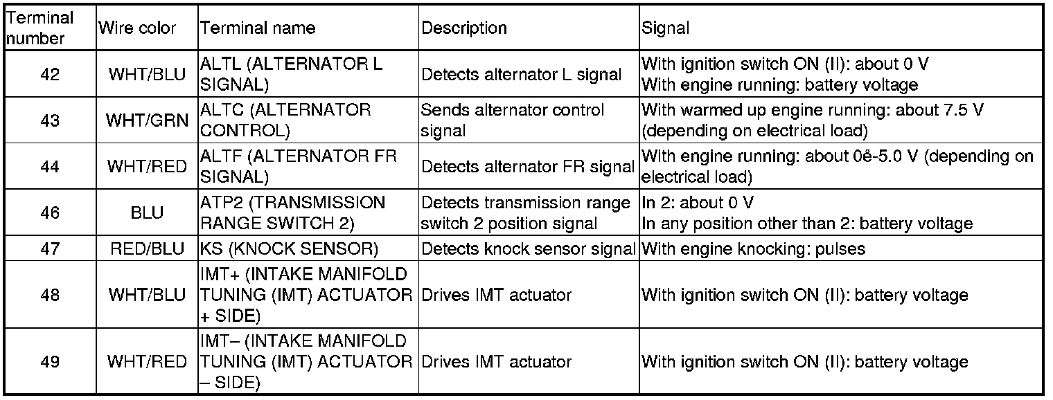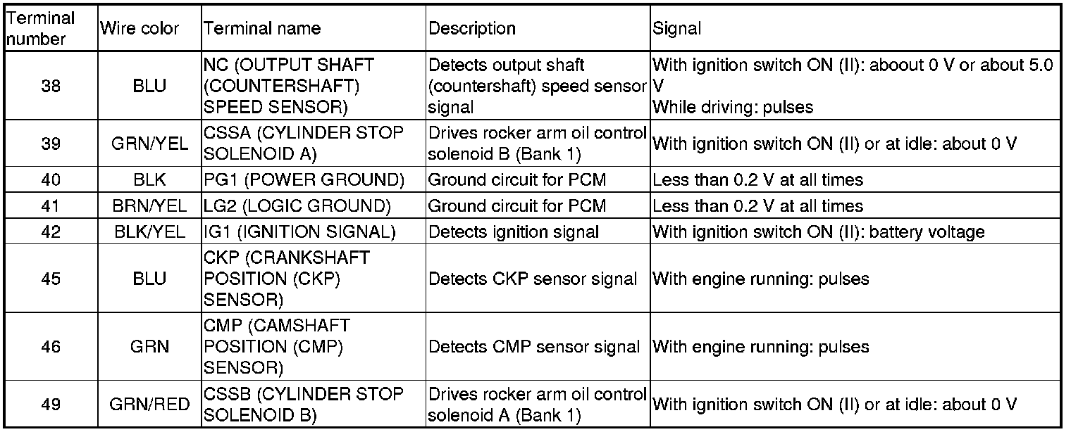 PCM Inputs and Outputs at PCM Connector A (square) (49P)