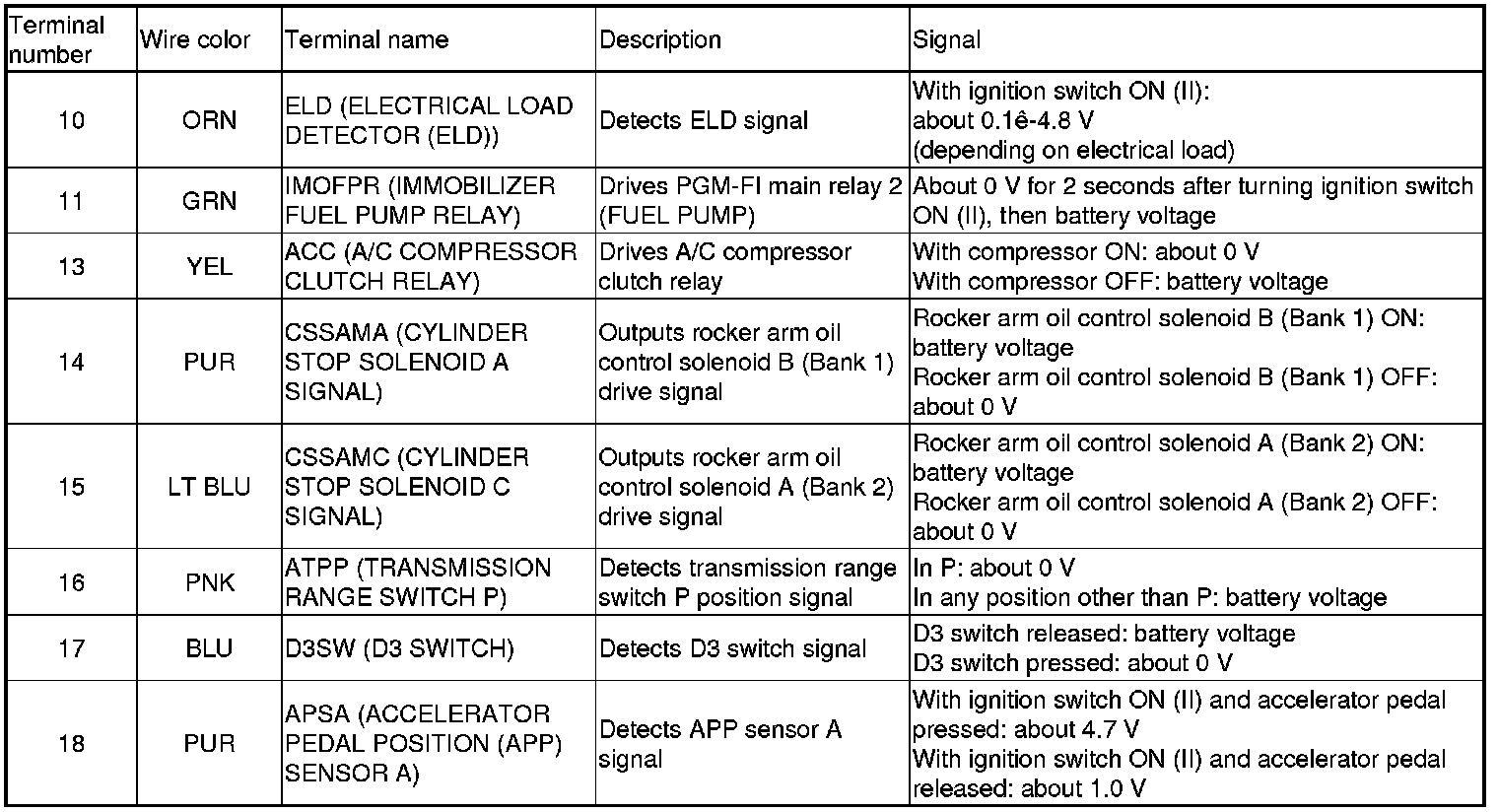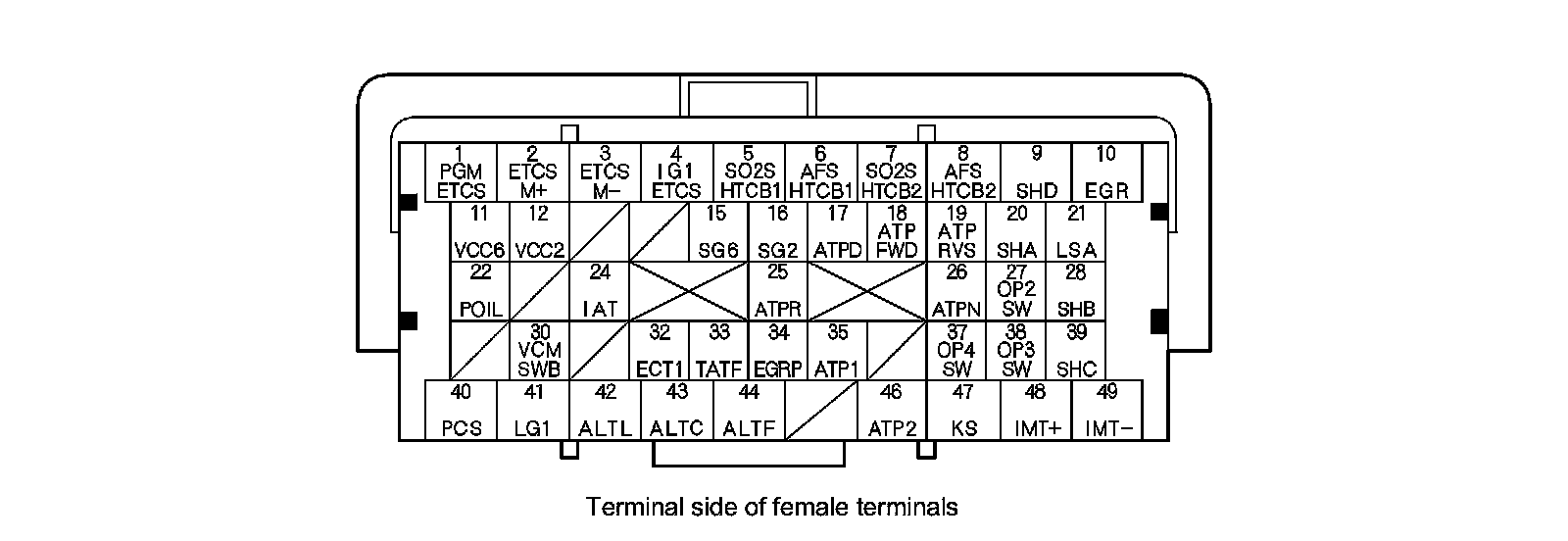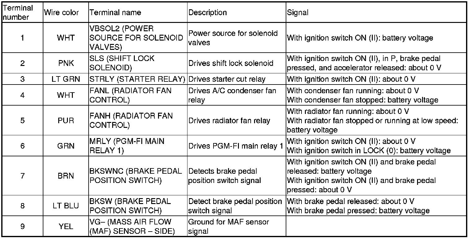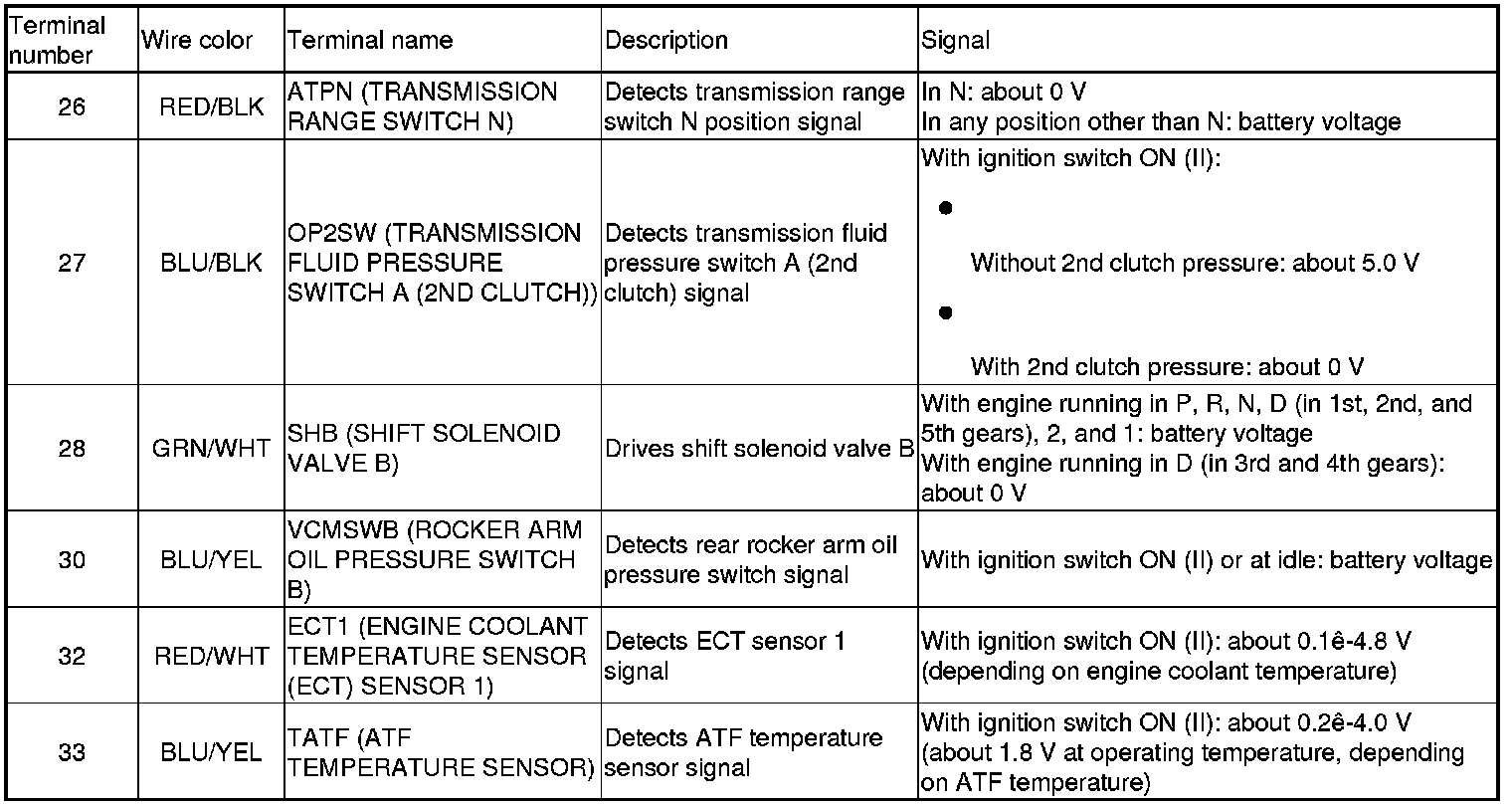 PCM Inputs and Outputs at PCM Connector A (square) (49P)