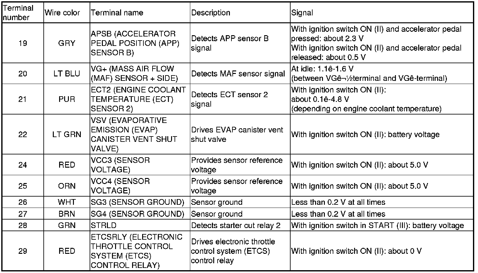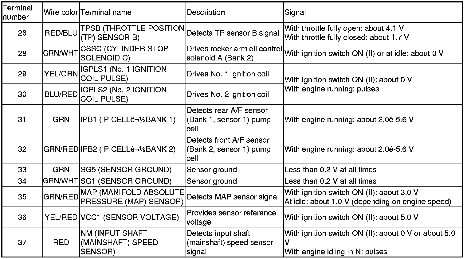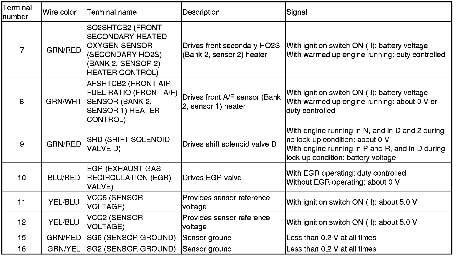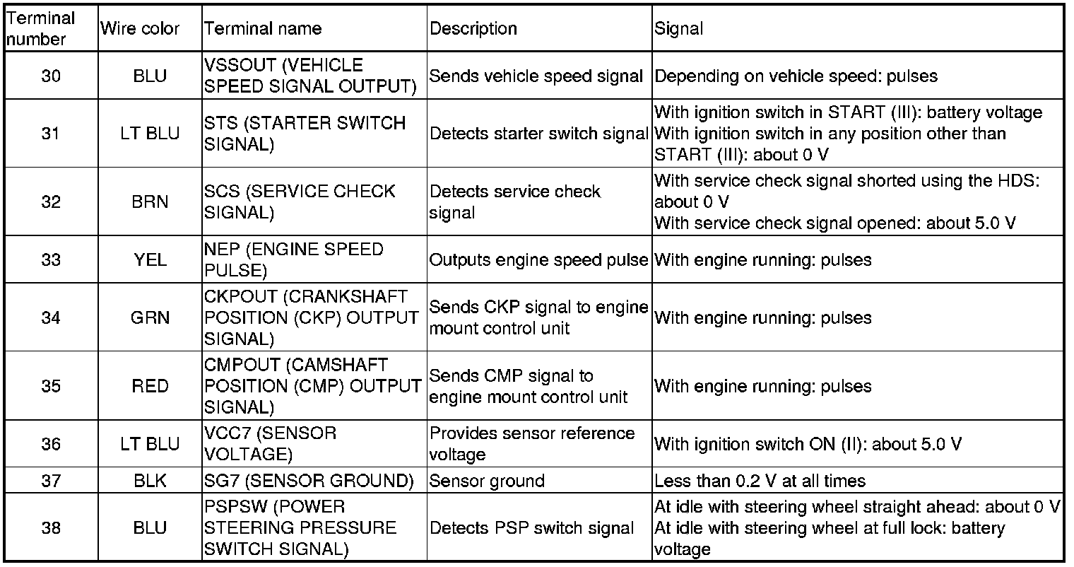 PCM Inputs and Outputs at PCM Connector A (square) (49P)