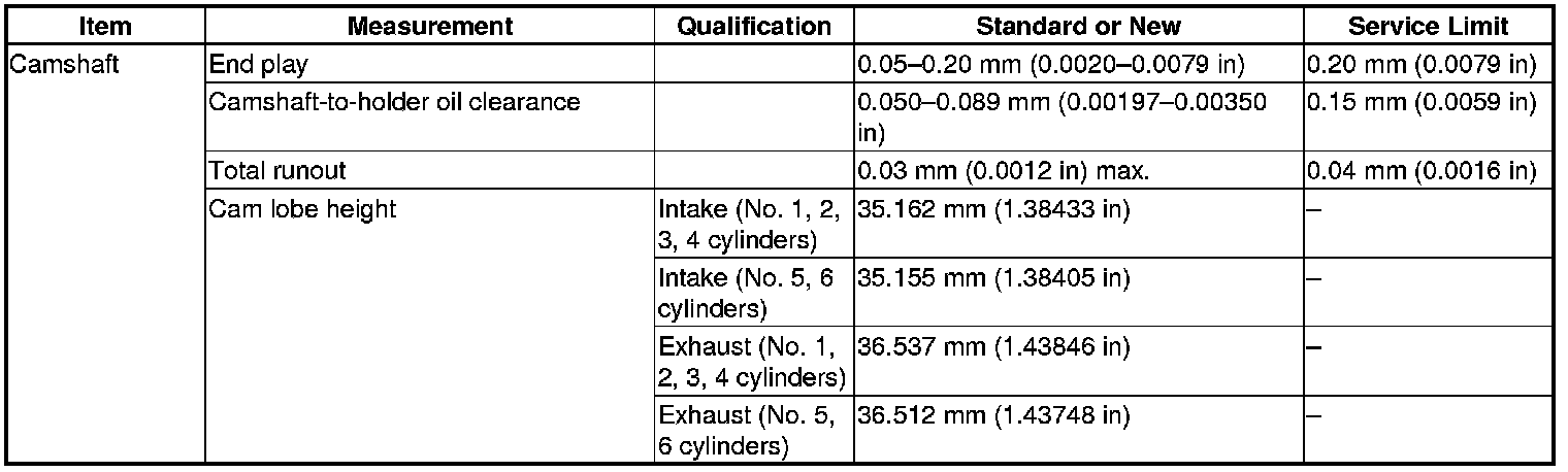 Camshaft Specification(s)