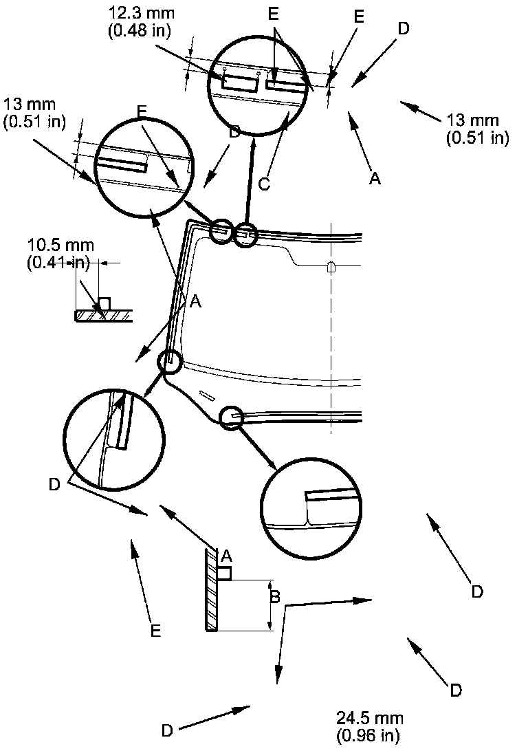 - Be sure the rubber dams and upper clips line up with the alignment marks (E).