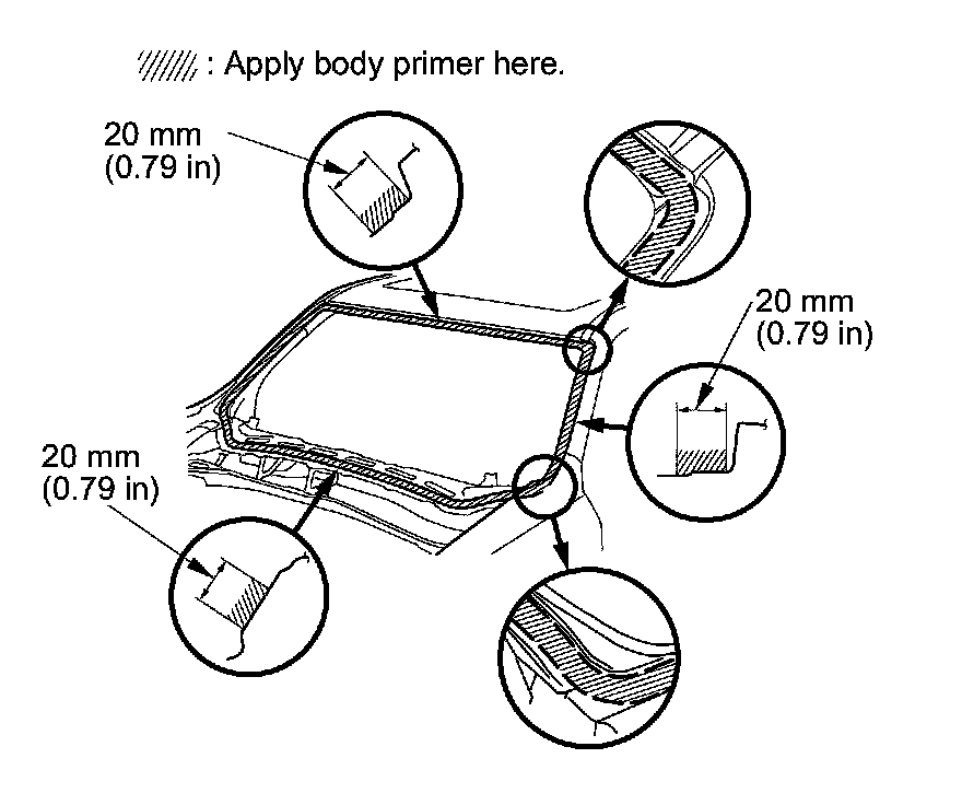 - Do not apply body primer to the windshield, and do not get body and glass primer sponges mixed up.