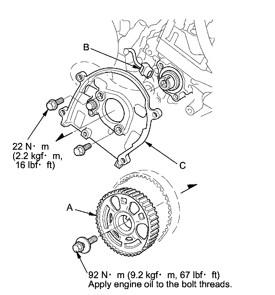 3. Disconnect the CMP sensor connector (B), then remove the back cover (C).