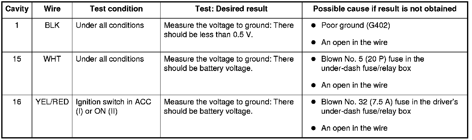 - If the input test proves OK, the HandsFreeLink control unit is faulty, replace it.