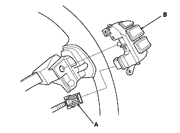 4. Disconnect the 12P connector (A), then remove the cruise control combination switch (B).