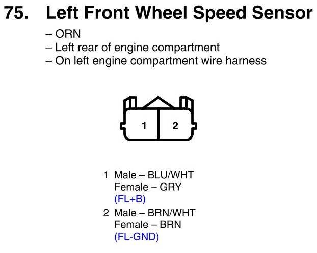 View 75 - Left Front Wheel Speed Sensor Connector View