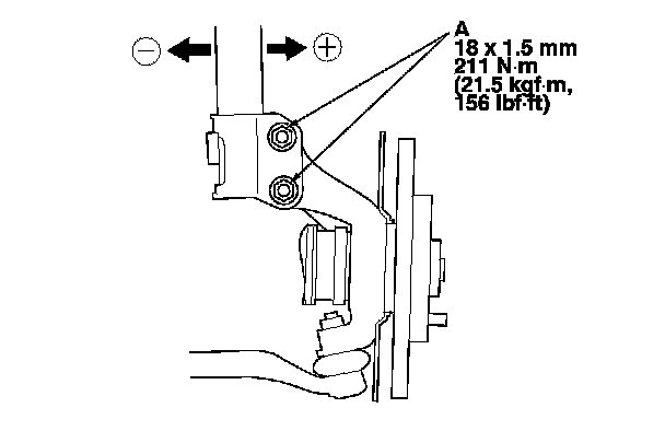 3. Loosen the flange nuts (A) and bolts, and adjust the camber angle by moving the bottom of the damper within the range of the damper pinch bolt free play.