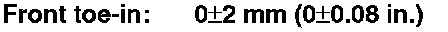 The suspension can be adjusted for front camber, front toe, and rear toe. However, each of these adjustments are related to each other. For example, when you adjust camber, the toe will change. Therefore, you must adjust the front wheel alignment whenever you adjust camber or toe.