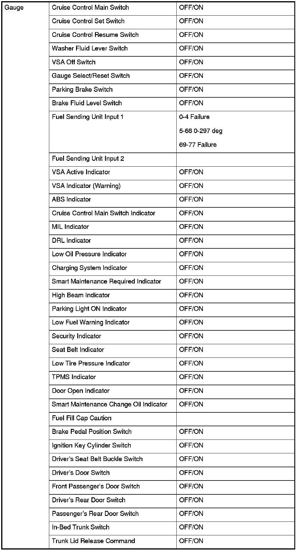 The body controller area network (B-CAN) and the fast controller area network (F-CAN) share information between multiple electronic control units (ECUs). B-CAN communication moves at a slower speed (33.33 kbps) for convenience related items and for other functions. F-CAN information moves at a faster speed (500 kbps) for "real time" functions such as fuel and emissions data. To allow both systems to share information, the gauge control module translates information from B-CAN to F-CAN and from F-CAN to B-CAN.