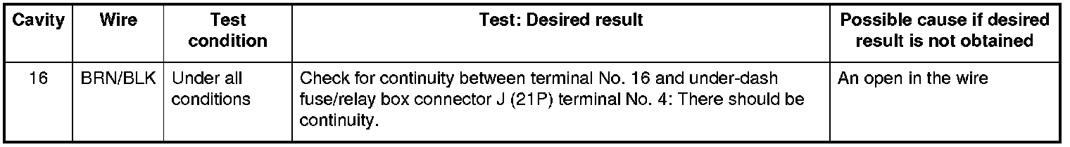 6. With the connector still disconnected, do these input tests at the following connector.