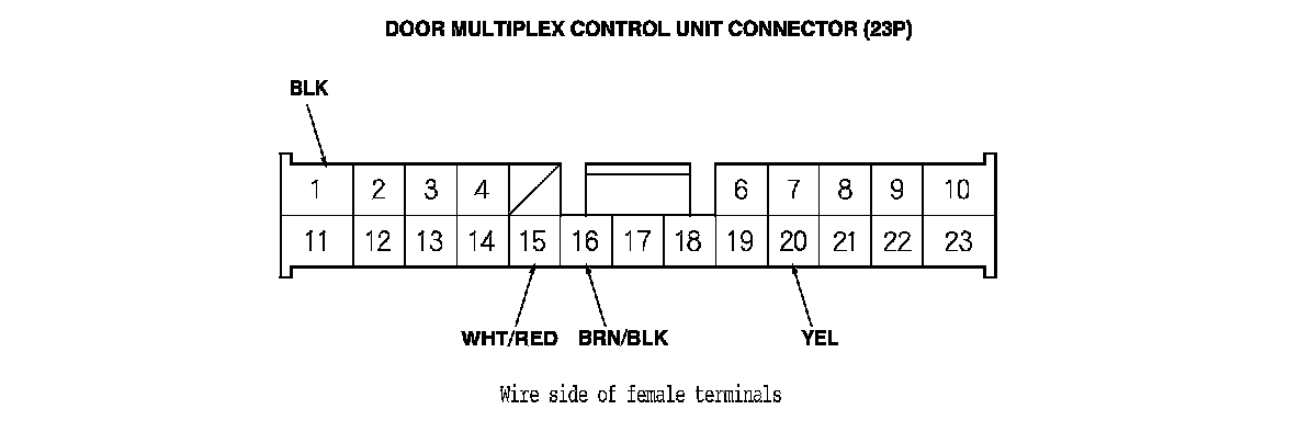 7. Reconnect the connector to the door multiplex control unit, and do these input tests at the following connector.