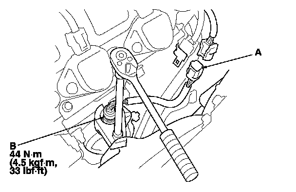 1. Disconnect the rear A/F sensor 6P connector (A), then remove the A/F sensor (B).