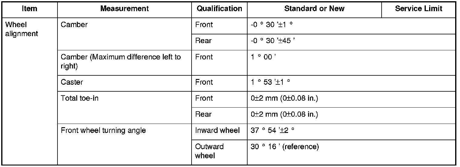 Wheel alignment Specifications